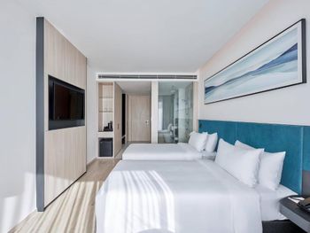 Розетки ужасны. Зарядить телефон, часы это квест, подпирание бутылками и всеми подручными средствами и мольбой чтоб она работала. Раздолбаны не буду говорить как кто. У жены был аттракцион гимнастики высушить волосы местным феном, ногой держишь розетку с феном, на другой балансируешь. Да и это касается абсолютно всех розеток в номере. Звукоизоляция. Ее нет. Слышно все что делают соседи. Начиная от соития, заканчивая включением воды в раковине. Отель с оплатой заранее, приехал заплатил за 3 дня до заселения. При заселении оказалось что надо оставить еще депозит о котором ранее при бронировании не было указано, при оплате не было сказано, сотрудники рассказывали сказки что это для моего комфорта и безопасности, такого бреда я в жизни не слышал. И снова ни при бронировании, ни при оплате заранее, а только при заселении они сказали что у них идет ремонт на 26 этаже, там где фитнес центр, там где бассейн, и естественно это все не работало. Классно забыть не сказать неудобные для них обстоятельства. Грохот оттуда стоял такой что не возможно было находиться в номере на 20 этаже. Благо это продолжалось не все наше пребывание в отеле. Отель облюбован китайскими друзьями, учитывайте что тишины на завтраках, в лобби и так далее не будет.