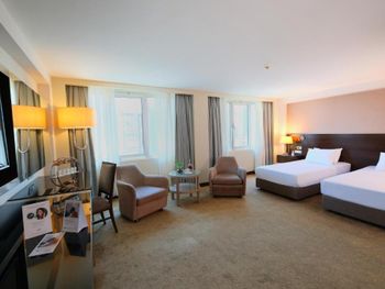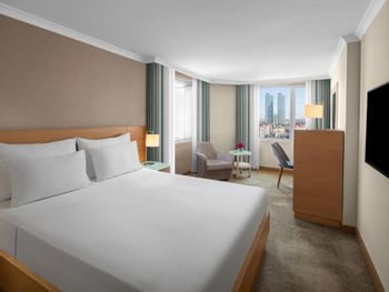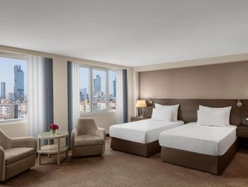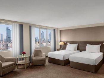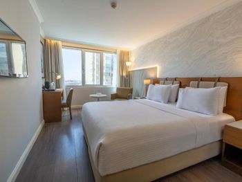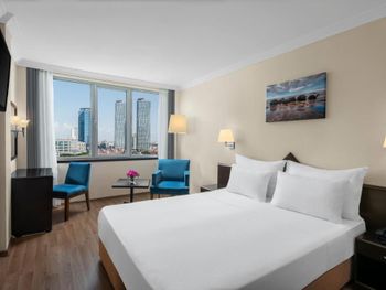 The modern rooms and suites at the Istanbul Dedeman are decorated in warm colours. They include satellite TVs, complimentary water and tea/coffee making facilities, minibars and bathrobes and slippers for extra comfort. Also, the guests can take advantage of free wi-fi all around the hotel.