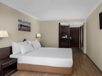 очень старая гостиница, со старой мебелью, зашорканые кресла, столы все отбитые, кровати скрипучие, воняет канализацией, кондиционер не работает во всем отеле, wi-fi, не работает. и эти проблемы никто не решает. принесли супер пыльный вентилятор. который гонял по комнате горячий воздух