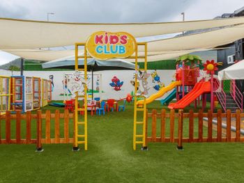 Мы отдыхали несколько дней с ребенком 5 лет, понравилось, что есть детский бассейн на территории и есть аквапарк, детская площадка с горками и лазилками. Еда в целом норм, особенно понравился ланч-бар, который работал с 12 до и 16 и там делали шаурму, пиццу, луковые колечки, картошку фри. Мы же возим детей за границу, чтобы они могли попробовать картошку фри во всех странах, правда? xD Один нюанс, мы попали на полный отель, поэтому некоторая еда очень быстро заканчивалась)) а еда с гриля имела очередь, но это скорее говорит о качестве отеля (его полная загрузка). В основном отдыхающие были из СНГ и Турции, персонал дружелюбный, люди тоже.