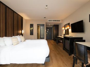 Номер в который нас заселили вообще не соответствовал фотографиям. Причем по разговорам с постояльцами это касается всех домиков вне основного корпуса. Фотографии сделаны так, что скрывают его истинное состояние. Номер грязный, нормального света нет, многое поломано, пошарпано, выглядит как домик для строителей которые строили основной корпус. Кондиционер поломанный - холодил но трещал так, что спать возможно только в берушах. На просьбу вернуть деньги или переселить в основной корпус ответили отказом. Переселили только после жалобы в компанию Букинг. Откуда у этой гостиницы 4 звезды - загадка. Максимум 2 звезды.