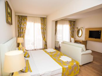 Элегантные номера курортного отеля Cesars Bodrum оформлены в классическом стиле. В числе удобств кондиционер, ЖК-телевизор со спутниковыми каналами, мини-холодильник и балкон.