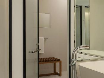 - Раздвижные двери в сортир и ванную - это прямо беда всех отелей, где они поставлены. Тяжелые, грохочущие и без какого либо вида доводчика. При этом функцию двери они выполняют только визуально, так как звукоизоляцию не завезли)