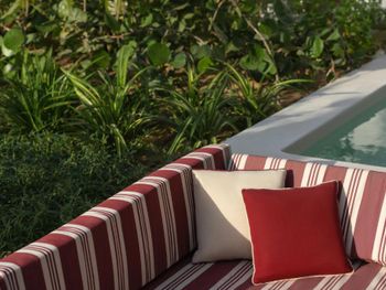 Из зоны у бассейна выжато по максимуму, отличные мягкие лежаки, персонал разложит вам полотенца, но будьте готовы, что ближе к 10 может не быть свободных мест. Сам бассейн небольшой, но хоть есть глубина посередине в 150 см, это хорошо. И конечно он с охлаждением, что дико актуально)