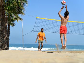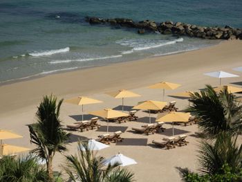 Пляж с открытым морем, что здорово, бывают волны, все по честному. Песок чистый, лежаки - как везде, в общем нормальные, сервис еды и напитков по меню в наличии.