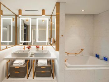 Бронировали люкс за несколько месяцев по хорошей цене - по приезду с утра оказалось, что бронь была отменена за день до заезда то ли Букингом, то ли службой размещения. Пару часов ожидания в подвешенном состоянии подпортили первое впечатление, но отель вывез ситуацию, предложив заселиться в люкс большего размера. Так что считаю инцидент исчерпанным и поставлю это в плюс.