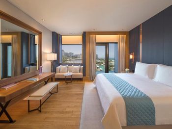 Номер - тут интересная ситуация получилась. Нам достался 77м люкс, простора хватает, лоджия и панорама отличная на город, но критически мало места для хранения вещей, всего один шкаф и тот неудобно открывать из-за прикроватной тумбочки. Как пример, приходилось использовать подставку под чемоданы как место место хранения футболок, а пляжные принадлежности и нижнее белье распределять по многочисленным ящикам!