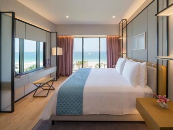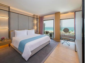 Цена/качество не соответствует реальности. Полагаю такая цена из-за того что это блювотерс? Поехала только из-за того, что блогеры рекламировали и было интересно. У меня было заселение в 3 дня, мне предложили 2 номера первый по букингу с видом на море (от вида там только пальмы перекрывающие море) и второй вид лучше но номер для людей с ограниченными возможностями. В общем все детали долго расписывать. Мне не понравилось, что не предложили при заселении ничего комплиментарного пока ожидаешь (освежающее полотенце, коктейль, финики, воды) после заселения в номер заселении были ощущения что меня тут никто и не ждал, не было приветственного письма, ни комплиментарных десертов, их принесли уже вечером. Убирались в номере ну скажем так себе, зашторить к вечеру шторы и всё? В отелях такого уровня обычно тапочки рядом с кроватью хоть оставляют. Я уже молчу если у человека присутствует легкий бардак, как у меня была разложена косметика, её обычно собирают аккуратно на небольшое полотенце. В данном отеле всё осталось как и прежде. Персонал не всегда был приветлив, понимаю, было начало рамадана и некоторым сложно. Ок. Но все эти мелочи оставили неприятный осадок, не буду останавливаться тут более.