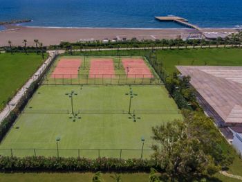 В числе удобств спа-центра отеля Delphin BE Grand Resort отделанный мрамором хаммам, салон красоты, в котором можно заказать массажные и косметические процедуры, а также тренажерный зал с профессиональными тренерами. Кроме того, гости могут воспользоваться 6 освещаемыми теннисными кортами и площадкой для пляжного волейбола, а также посетить занятия по аквааэробике.