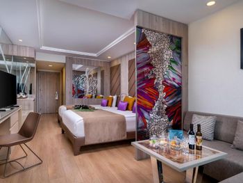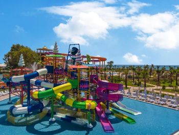 Огромная территория, места достаточно всем, особенно порадовал персонал - очень дружелюбный, приветливый реально знают английский и можно решить сложные вопросы, так же многие говорят на русском. На пляже и пирсе всегда были места. Отдельно надо отметить то что вечерняя программа удалена от здания к морю и если ложиться отдыхать в 22 то музыки практически не слышно в номера на море. Аквапарк практически профессиональный, высота лестницы 6 пролетов, горки сложные, интересные, достаточно долгие но не опасные.