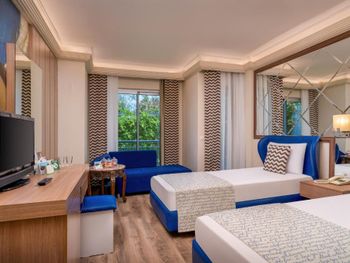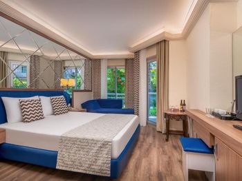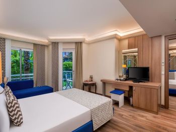 Этот 5-звездочный пляжный курортный отель с видом на Средиземное море располагает современными номерами с телевизором с плоским экраном и собственным балконом. Удобства включают открытые бассейны с водными горками, кинотеатр и спа-салон.