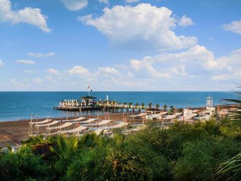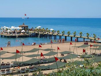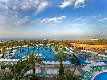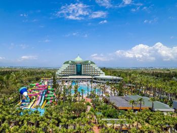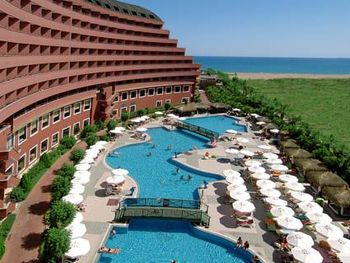 Теплое море, мелкий песок на пляже, внимательный персонал. Видно, что и владельцы отеля, и их команда очень стараются сделать все на уровне мировых стандартов. Беда в том, что их амбиции не всегда поддержаны их умением. Огромный выбор блюд, например, не сопровождается вкусовыми достоинствами - шеф-повар скорее дизайнер, чем умелый кулинар с фантазией. И хотя ассортимент включал и различные сорта рыб, и морепродукты, и блюда из овощей, говядины, баранины, кур, индеек, перепелов, дважды были даже крабы и устрицы (несъедобные - сухие и почему-то теплые), из вкусного можно вспомнить только тушки жареной рыбы (форель, дорада), которую трудно испортить – достаточно при вас бросить на сковородку. Блюда или пересоленные или совсем без соли. Часто немилосердно пересушенные. Супы вообще катастрофичны и напоминают горячую воду, куда бросили немного куриного мяса, доведенного до состояния волокон. Зато прекрасные десерты - аплодисменты кондитерам! Рестораны A la carte, в сущности, предлагают готовые комплексы с очень скудным выбором. Все они тоже не блещут кулинарным мастерством, из них самым приличным по качеству показался средиземноморский Helena. Бассейны хорошие, но, к сожалению, все с пресной водой, и замечательная Skate Team - развозит на роликах напитки отдыхающим. Крытый бассейн подогреваемый и с джакузи. Добротно оборудованные просторные номера с меблированными балконами и обилием зеркал. Несоразмерно маленький телевизор. Мини-бар ежедневно пополняется напитками, включая пиво. Смена белья через день, полотенец - ежедневно. Уборка качественная. Очень развитая структура детских развлечений - аквапарк, луна-парк с колесом обозрений. Вина в ресторанах турецкие, грубоватые, но неплохие. В барах можно получить и импортные напитки, включая коньяк Napoleon. Обстановка в главном ресторане напоминает фабрику-кухню с толкотней, очередями, снующими людьми с доверху заполненными тарелками и грохотом посуды. Ни о какой социальной дистанции и речи нет ни в ресторанах, ни на пляже.