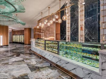 В ресторане Delphino подают блюда интернациональной кухни, включая османскую, итальянскую и японскую, а также свежие кушанья из морепродуктов. Коктейли предлагаются круглосуточно в лобби-баре. Вечерняя программа включает в себя живую музыку, дискотеку и комедийные шоу.