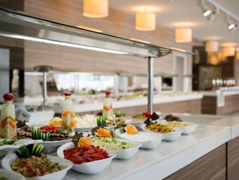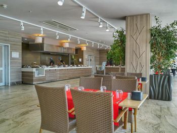 В главном обеденном зале сервируется вкусный бесплатный завтрак «шведский стол». Вы также можете пообедать на открытой террасе с прекрасным видом на залив Ялыкавак.
