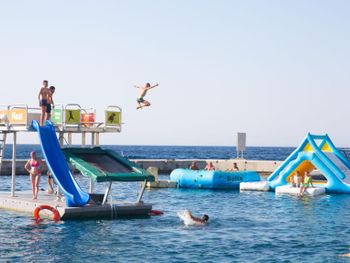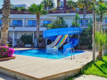 Кроме того, вы можете расслабиться, пока дети веселятся на водной горке, а взрослые смогут провести время за играми у бассейна.