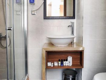 Покупала не самый дешёвый номер. Было дешевле предложение, но я взяла подороже! Номер 403 требует ремонта: обои отошли от стены, дверь в санузел не двигается, сантехника брызжет в разные стороны, нет мыла в душевой кабине, нет шампуня и обычного мыла, полотенца застираны - серого цвета
