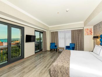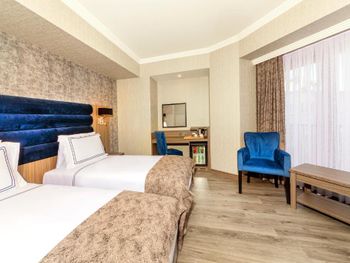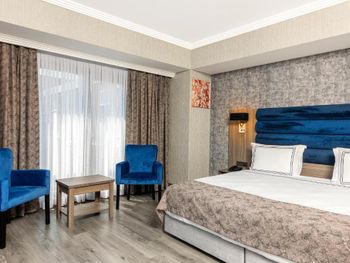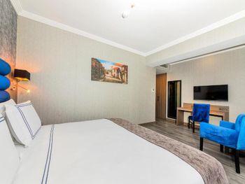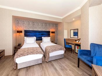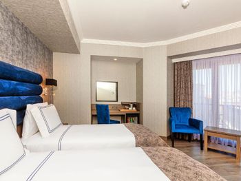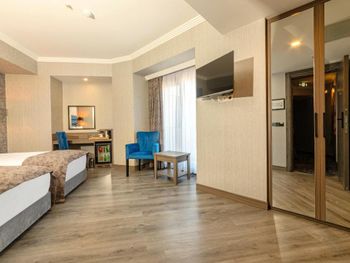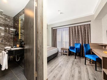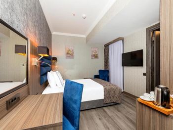 Комната маленькая, вид из нашего окна был мрачным ,серым, персонал в рецептуре при выезде 9/5 утром имени не знаю, очень грубый, до этого за день тоже что-то спрашивали коротко неохотно отвечал. Гостиница находится на крутом подъёме что усложняет дойти после Стамбулских прогулок. Вечером ходить там вообще страшновато.
