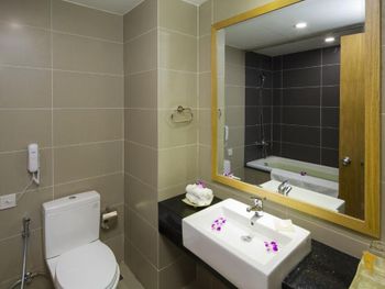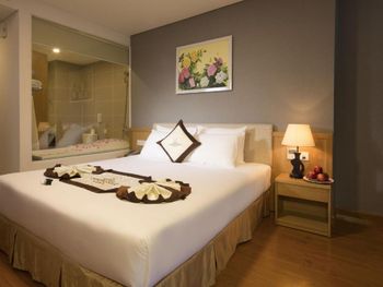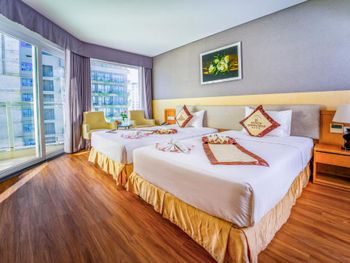 Отель не новый, но чистый. Номер Делюкс с видом на море небольшой, с балконом и боковым видом на море. В ванной комнате ванна, а не душ, одноразовые зубные щётки, гель для душа и шампунь. Полотенца и постельное белье чистое без дырок и пятен. Отель расположен в переулке, недалеко пляж. Пляжные полотенца можно взять на первом этаже с последующей заменой на чистые каждый день.Завтраки разнообразные, преимущественно азиатская кухня. Не хватает выпечки. Отель достаточно большой, но скопления народа на завтраке не было, места хватало всем, в очереди никто не стоял! На четвертом этаже расположен бассейн с прохладной водой и небольшой спортивный зал.