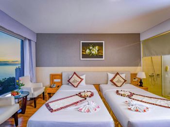 Отношение персонала,готовность оказать помощь. Отдыхающих с других стран очееень мало(большое количество вьетнамцев,особенно на выходных),поэтому стараються угодить и все объяснить. Отель понравился,месторасположение отличное. Тишина. До пляжа идти пешком 5 минут.Рядом много кафешек. Бассейн хороший. Вид из номера,замечательный. Завтрак не для русского туриста,но голодным не будете.... Экскурсии с Иваном,нет слов. Он просто .. сказка. Все раскажет..и ты окунешся в атмосферу отдыха и изучения страны....Спасибо ему за ВСЕ....