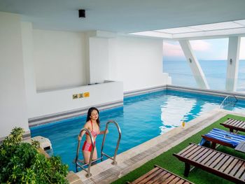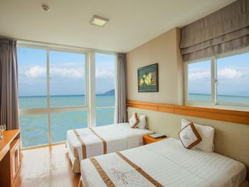 Отель расположен на первой береговой черте, до пляжа не более 50 метров, нужно переходить очень оживленную дорогу, на которой водителе никогда не уступают пешеходам (это особенность Вьетнама). Более положительного в этом отеле нет!