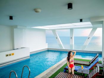 Брали несколько номеров в этом отеле. Одна бронь была на обычный номер стандарт, но мы решили доплатить и переселиться в номер с видом на море. Номер без вида обычный, окон нет, только форточка. Большой плюс это наличие ванны и душа одновременно в некоторых номерах. А в номере с видом на море всё было прекрасно. Огромные панорамные окна, большая площадь номера. Прямо в отеле можно взять байк в аренду, есть подземная парковка с лифтом в номер. Очень удобно. Рядом магазин продуктовый, куча кафе, пляж через дорогу. Рядом со входом есть зона для мытья ног от песка. На 15 этаже бассейн. Есть стол для работы и хороший интернет Всё понравилось, рекомендуем