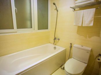 Один раз ждали лифт очень долго. Шум от дороги и слышно кондиционер за окном в туалете.