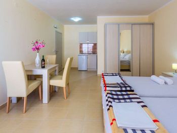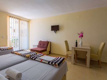 Все номера новые и полностью оборудованы для комфортабельного отдыха. В номерах: балкон с видом на море, кондиционер, кабельное ТВ, мини-кухня с холодильником, Wi-Fi. Studio 02+1 SV: 25м2, балкон 5м2 с видом на море, две раздельные кровати + раскладное кресло, кондиционер, ТВ, мини-кухня с холодильником, ванная комната с душем. Studio 03+1 SV: 30м2, балкон с видом на море, две раздельные кровати, отдельная кровать, раскладное кресло, кондиционер, ТВ, мини-кухня с холодильником, ванная комната с душем.