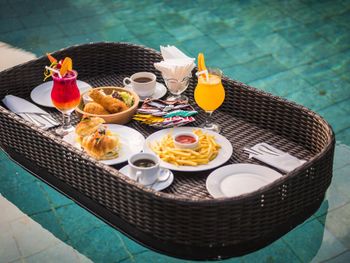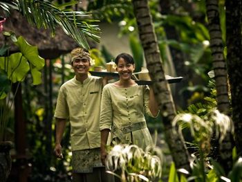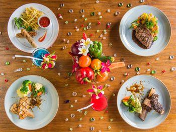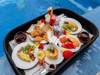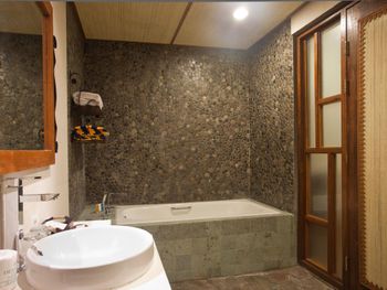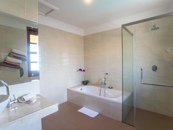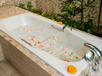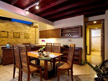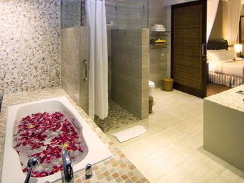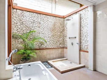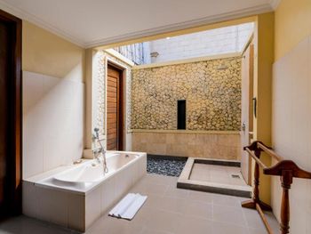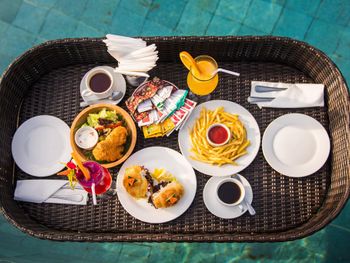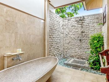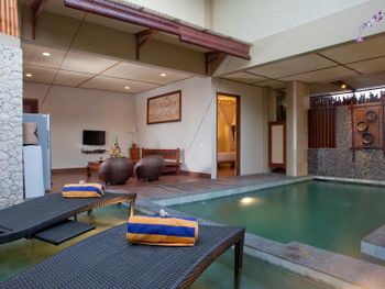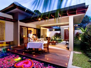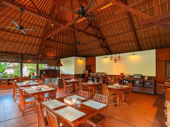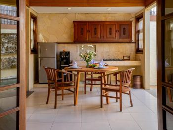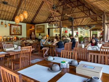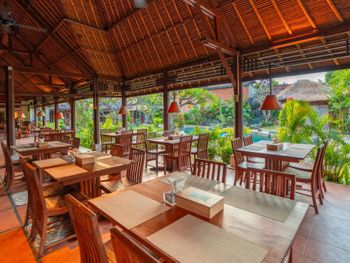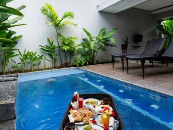 Floating breakfast can be served in the private pool based on availability. The Rice Table Restaurant serves a wide selection of Indonesian and European dishes, while Dots Cafe offers international selections. In-room dining is possible and drinks are available at the hotel’s bar.