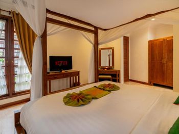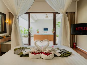 Вилла была великолепной! Именно такую виллу я представляла себе, когда думала о Бали! Очень дружелюбный персонал, красивая и ухоженная территория, отличный бассейн, удобная кровать, чистая постель. Для нас любезно украсили комнату в честь медового месяца за дополнительную оплату.