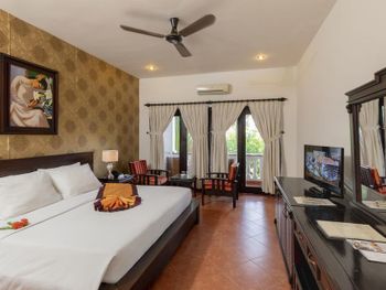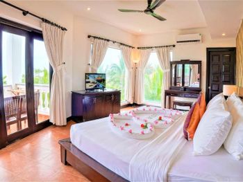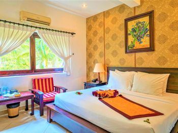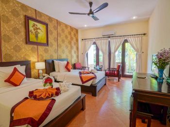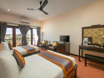 В интерьере номеров с кафельным полом сочетаются современный и традиционный вьетнамский стили. В распоряжении гостей собственная ванная комната с феном. Среди удобств — мини-бар.