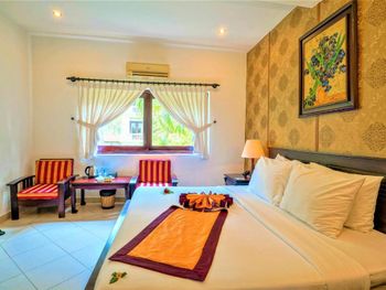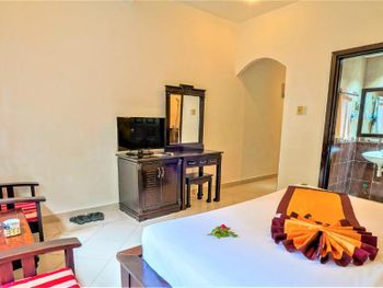 Ох.. даже не знаю с чего начать. Во первых, не понимаю откуда им дали 4 звезды??!! Этот «отель» вряд ли можно оценить хотя-бы на 2 звезды. Мебель очень старая, матрац с пружинами, которые врезаются в тело очень больно. Ветхая разваленная утварь, непригодная для использования. Ужасный ремонт, напоминающий дом бедняка. Такое ощущение, что ремонт не обновляли лет 20-30. Отколотые плитки в номерах, убитые сгнившие лежаки, грязь на пляже, пришлось чистить самому, чтобы исправить вид. Шумоизоляции нету СОВСЕМ!! Слышно как соседи ходят и даже дышат за стенами, полом и потолком. Когда соседи включали кондиционер, казалось что за стеной работают автомобиль. Вентилятор в ванной издает невероятный гул. Из коридора слышно абсолютно все, так как дырка из туалета ведет прямо в коридор, можно увидеть как ты моешься. На территории отеля все сделано очень кустарно и неаккуратно, все удобства очень старые, туалеты старые, чиненные очень плохо. Покрашено на 10 раз по одним местам без ремонта, но даже внешне это выглядит убого. Я провел ужасную неделю в этом отвратительном месте. Пожалел очень сильно. Не мог нормально спать из-за шума, матраца с торчащими пружинами. Еще хочу отметить что вода из крана коричневая и у меня появились прыщи, которых никогда не было! Ужасно!!!