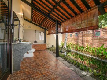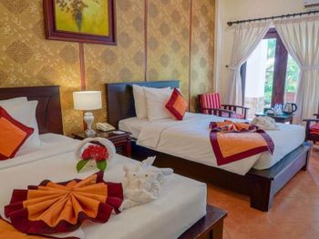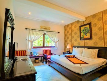 Очень уютный, зелёный, спокойный отель! Нам дали номер бунгало, очень просторный с двумя спальнями и санузлами, с двумя террасами ! Мебель не новая, но деревянная, добротная, не пошарпанная, создающая соответсвующий антураж и атмосферу. Завтраки очень хорошие, в выходные в отеле очень оживлённо, видимо, приезжают местные, но всем хватало места и еды. На буднях было очень тихо и спокойно. Два бассейна, вода в них тёплая Уборка номеров каждый день, белье и подушки с матрасом хорошие