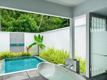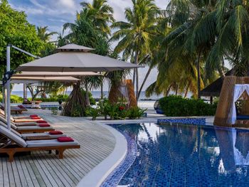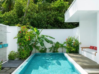 В пышном тропическом саду курортного отеля работает спа-центр с открытым мини-бассейном, вокруг которого установлены небольшие удобные диваны для отдыха и проведения традиционных терапевтических и оздоровительных процедур.