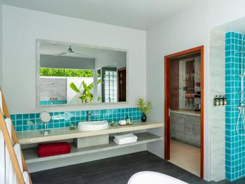 Выход с виллы в воду не позволяет плавать: мелко и дно в кораллах. Риф скорее мертвый, чем живой. Рыбки есть и даже видели скатов, но сами кораллы в плачевном состоянии. Рестораны а-ля-карт, дайвинг центр и водные туры надо бронировать до приезда. В душе всегда холодная вода. Вечером есть москиты. Кокосы не всегда есть в наличии, несмотря на то что они платные.