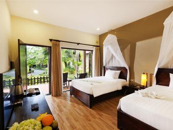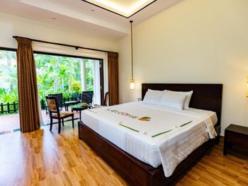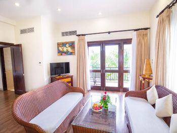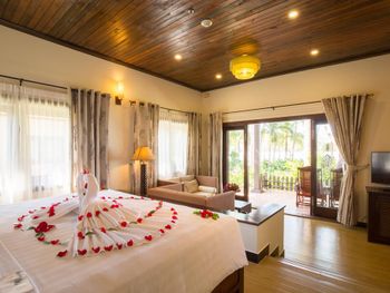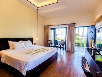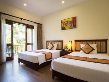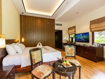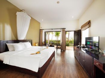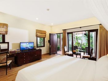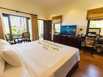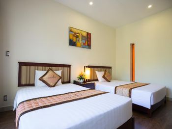 Оборзевшие и нагловатые русскоязычные сотрудники на ресепшен, рекомендую решать вопросы через из их Вьетнамских коллег, уверяю, в таком случае все ваши проблемы будут решены. В бунгало очень плохо работают кондиционеры (очень старые), меняли бунгало два раза из за того, что днем было невозможно находиться внутри помещения, представьте как хотелось прохлады после посещения раскаленного пляжа, как результат - полностью испорченны два дня отпуска, так как, вместо отдыха занимались решением технических вопросов: поиск работающих кондиционеров в бунгало, ожидание подготовки бунгало (наведение сомнительного порядка), переезд и пр. Вызвали инженера (ремонтника) перед обедом, с ресепшен перезвонили только вечером, когда жара уже спала, задали вопрос - нужен еще инженер или уже нет? Когда меняли бунгало, обещали перезвонить когда наведут в другом бунгало порядок, в итоге так никто и не перезвонил (это что, уровень 5 звезд?). Питание очень дорогое, по сравнению с Нячангом дороже в 3-4 раза, и к тому же, не особенно вкусное. Трансфер организован самым отвратительным образом, особенно печально смотреть как идет загрузка автобусов в предпоследний и последний автобус до отеля, мест катастрофически не хватает и все ругаются. Были рады съехать из этого ада и перебраться в отель в Начанге.