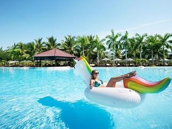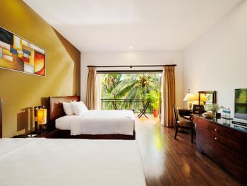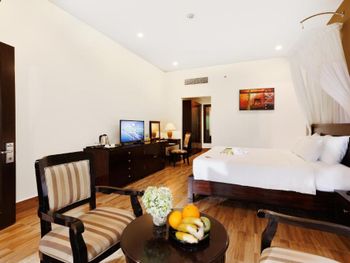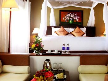 При описании пишут 5 или 6 ресторанов на территории отеля- это ложь! Работает всего два, один это шведский стол по цене 23$ с человека, что очень дорого для Вьетнама, а второй с отвратительным качеством еды... Был случай отравления у нас! Администрация никак не отреагировала, даже не извинились! Прислали фельдшера вьетнамского, который даже по английский двух слов не знает!!! Ещё один не приятный момент, что налоги которые по всей видимости отель должен платить государству, включают вам в цену... Т.е. берете например пиво в баре, ценник в меню 30000 донгов, а оплатите 30000+ 15%.!!!! И так везде в отеле!!! В городе такого нет!!!!