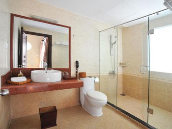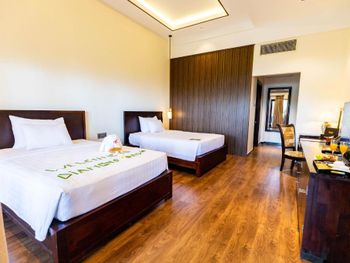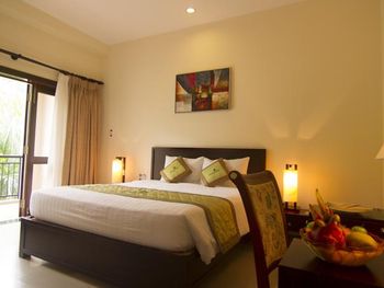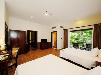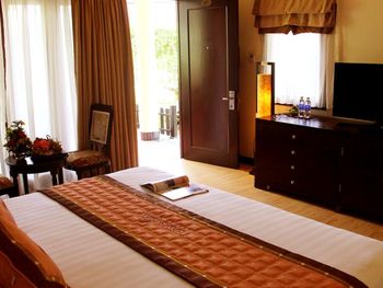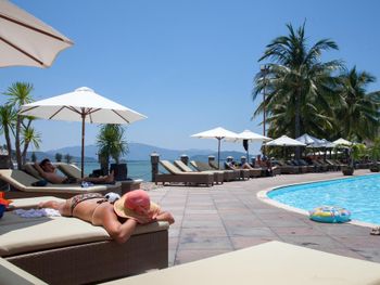 Прекрасная зелёная территория. В номере было довольно чисто, полотенца меняли ежедневно, белоснежное постельное белье. Довольно разнообразный завтрак, но преобладают блюда азиатской кухни. В общем неплохой отель для спокойного семейного отдыха. Проблема с развлечениями решается очень просто: ежедневно из отеля ходит бесплатный автобус в Нячанг.