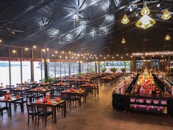 В 2 ресторанах курортного спа-отеля Diamond Bay предлагается широкий ассортимент блюд, включая деликатесы вьетнамской кухни и фирменные блюда интернациональной кухни. В ресторане Vista Grill House сервируют завтрак и ужин «шведский стол» с блюдами местной и интернациональной кухни. Ресторан Banana Leaf открыт на обед.