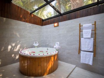 В номере не продумано расположение розеток - не сразу нашли, куда включить чайник. Сейчас отель в запустении, наверное, после пандемии не отошли ещё. Люди ходят, работают по саду и видно было, что старались для нас. По территории гулять приятно - тихо, очень зелено, красивый тропический сад. Но, конечно, главное разочарование -пляж, вернее, его отсутствие. Купаться негде, все в грязи. Утром в отлив зрелище очень печальное. Вечером вода прибыла немного, но лезть в нее совсем не хотелось. Больше напоминает болотце, а не море. Надеюсь, отель что-то придумает с этим, так как если ничего не делать с этим, то за такую цену, конечно, лучше будет выбирать другой отель с нормальным пляжем.