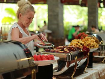 A varied breakfast buffet, beautiful green surroundings