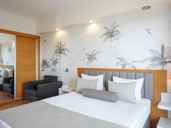 Уборка на высоте,мы никогда и не видели того,кто это делали,но всегда было чисто.В душе протекала душевая кабина,ее кое как замазали силиконом,но это видимо не помогло.Еда,да,вроде и все не плохо,но на третий день отравление и это точно от еды или напитков.Анимация это отдельная тема,для детей ничего нет интеремного,для взрослых анимация через день,дискотеки как таковой не было,шоу слабенькие,так,что в 10 можно идти спать.Поехали спонтанно и выбрали этот регион из за цены,но море штормило,вода мутная,но теплая,что и понятно при такой температуре воздуха.Больше точно нет ни данный отель ни регион в целом.