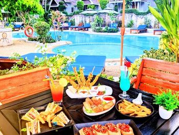В кафе тоже заказывали и ели по вечерам несколько раз - недорого получалось на семью и очень вкусно. Кафе чуть ниже под горкой рядом с баром - готовят в чистой кухне - все видно, приятно кушать. Днем могут принести к бассейну. Очень хорошие бургеры и картошка фри, супы из лапшы. Сам номер был с видом на море, семейный, места хватало, убирались каждый день. Рядом с отелем большая гора - ближе к 15 часам затеняет бассейн становится попрохладнее чилить. Немного подальше стоит от Walking street - но это и плюс. В отеле есть сад - в нем чего только не увидишь - был варан средних размеров, разные игуаны, птицы разных размеров, лангуры - прикольно! Макак, которые отнимают еду в саду не было, хотя они недалеко ведут свой промысел на волкин стрит в "бандитском переулке" там лучше если идете с пакетами с едой делать как некоторые - бежать и громко кричать ))))