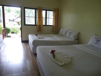 Номера в бунгало достаточно потрепанные, старая мебель, кондиционер не регулируется и дует на кровать, в номере темно, ванная комната жутковата, сантехника очень старая.