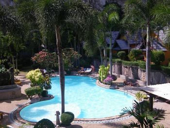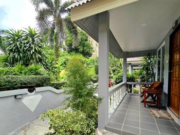 В кафе тоже заказывали и ели по вечерам несколько раз - недорого получалось на семью и очень вкусно. Кафе чуть ниже под горкой рядом с баром - готовят в чистой кухне - все видно, приятно кушать. Днем могут принести к бассейну. Очень хорошие бургеры и картошка фри, супы из лапшы. Сам номер был с видом на море, семейный, места хватало, убирались каждый день. Рядом с отелем большая гора - ближе к 15 часам затеняет бассейн становится попрохладнее чилить. Немного подальше стоит от Walking street - но это и плюс. В отеле есть сад - в нем чего только не увидишь - был варан средних размеров, разные игуаны, птицы разных размеров, лангуры - прикольно! Макак, которые отнимают еду в саду не было, хотя они недалеко ведут свой промысел на волкин стрит в "бандитском переулке" там лучше если идете с пакетами с едой делать как некоторые - бежать и громко кричать ))))