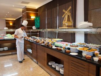 Отель говорит, что они 5 звезд. Максимум 1. Веселье начинается с заезда они должны заселить в 14.00 наш номер не был готов даже в 16.00. В номере нет ничего даже стаканчика, чтоб попить. Отношение персонала, мягко сказать скотское. Что либо добиться от них не реально! И есть такой атракцион под названием ЛИФТ. Их в отеле 4 примерно на 3000 человек. Его не дождешься. Еда,однообразная и к ней большая очередь.