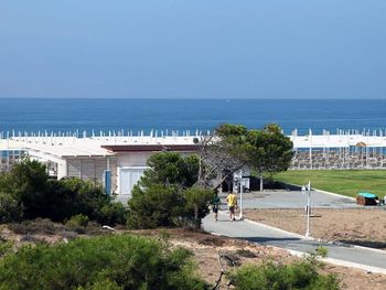 Пляж (много шезлонгов, песочек), море (теплое и чистое) и дорога, ведущая к пляжу. Природа отличная.
