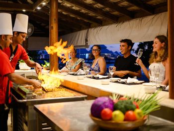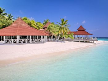 В главном ресторане ежедневно подают американский завтрак, а также блюда итальянской, азиатской и мальдивской кухни на обед и ужин. Помимо этого, в нем проводятся тематические ужины «шведский стол» и вечера с барбекю. В ресторане Water Villas готовят свежие морепродукты и блюда интернациональной кухни. Также в отеле работают 3 бара, в которых можно заказать алкогольные и безалкогольные напитки.Парам особенно нравится расположение — они оценили проживание в этом районе вдвоем на 9,6.Расстояние, указанное в описании, рассчитано с помощью © OpenStreetMap