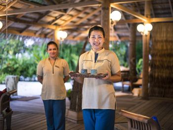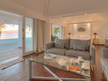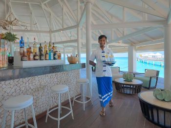 Персонал очень доброжелателен. Остров очень маленький, уютный. Бунгало двух типов: пляжные и на воде. Все выполнены в современном белом стиле, большие, просторные со всем необходимым. Заход в воду со всех сторон очень приятный, за чистотой следят ежедневно, нет побитых кораллов, которые мешают заходить в воду. Босиком везде было очень комфортно. На острове нет дорожек, все чистый песок (фишка отеля). Ходить босиком везде комфортно. Пляжные бунгало 36-39 одни из самых лучших, океан совсем рядом при выходе с террасы, безветренная сторона и немного людей.