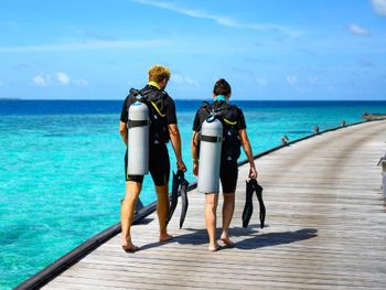 Ходили на дайвинг. Даже несмотря на то, что в языках не сильны, инструктора смогли донести всю необходимую информацию. Для первого раза нам понравилось, но смотреть было особо нечего. Рыб мало от слова совсем. Риф есть, но полу живой. Понравился сам процесс дайвинга. Очень хотели увидеть скатов, но, увы, их там нет. Посчастливилось увидеть уже в темноте одного малыша, но это чистое везение.