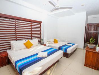Так как Диквелла была первым местом отпуска, то специально нами был забронирван номер с двумя большими двухспальными кроватями, чтобы отдохнуть с дороги. Заселение в отель было вечером, персонал был заранее предупрежден о времени нашего приезда, но поднявшись в номер мы обнаружили чисто косметическую уборку, как будто в номере кто-то уже живет, влажное и грязное постельное белье. На просьба поменять белье был получен ответ, что у них все белье такое и оно не грязное, а просто не отстирывается, а если нас что-то не устраивает, то мы можем снять другой отель, где есть свободные места. После долгих разговоров и споров, нам удалось все-таки договориться о нормальной уборке и смене белья на чистое и, как ни странно у них получилось найти абсолютно чистое постельное без пятен и, что не мало важно сухое. Также из недостатков хочу отметить поведение сотрудников (администратора) отеля, помимо очень странного реагирования на просьбу об уборке, расчет за номер также пытались посчитать по завышенному курсу (аргументируя тем, что это курс на дату бронирования), при этом сдачу хотели дать по курсу на сегодняшний день.